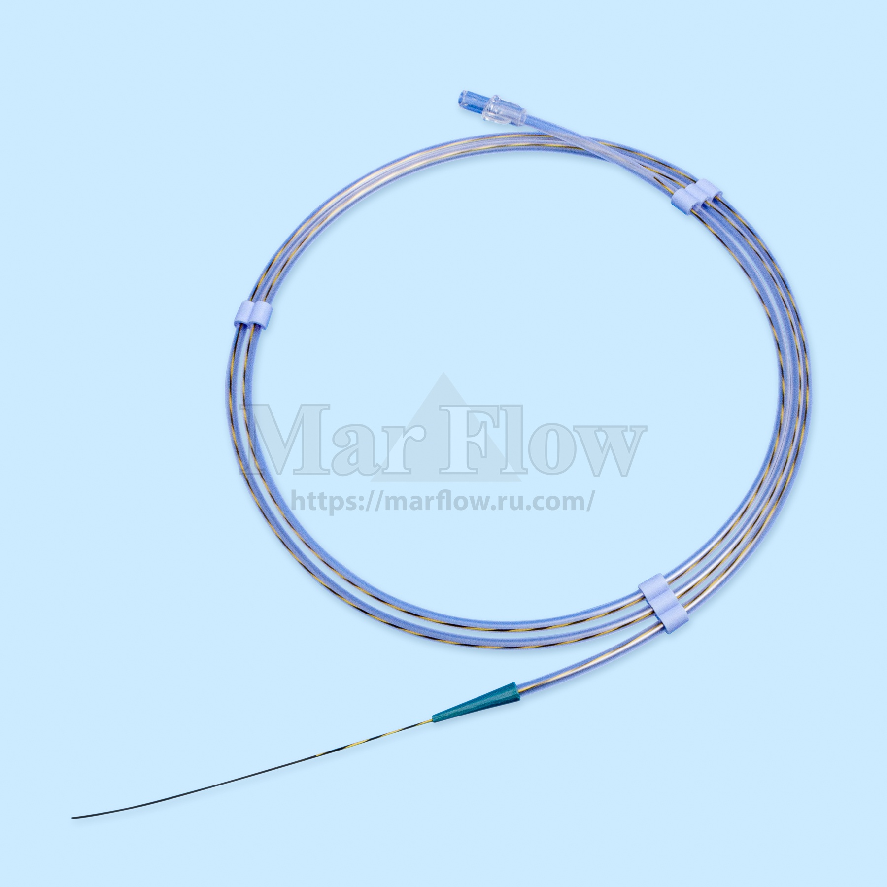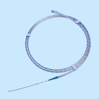 - На проксимальном конце располагается соединительный хаб для введения физраствора для активации гидрофильного покрытия.